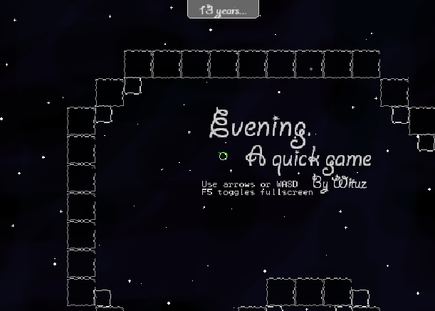 Evening is a quick project I've done over the past few evenings. I've worked on it totally for about 6 hours. Move with the arrow keys, with WASD or by clicking the screen.